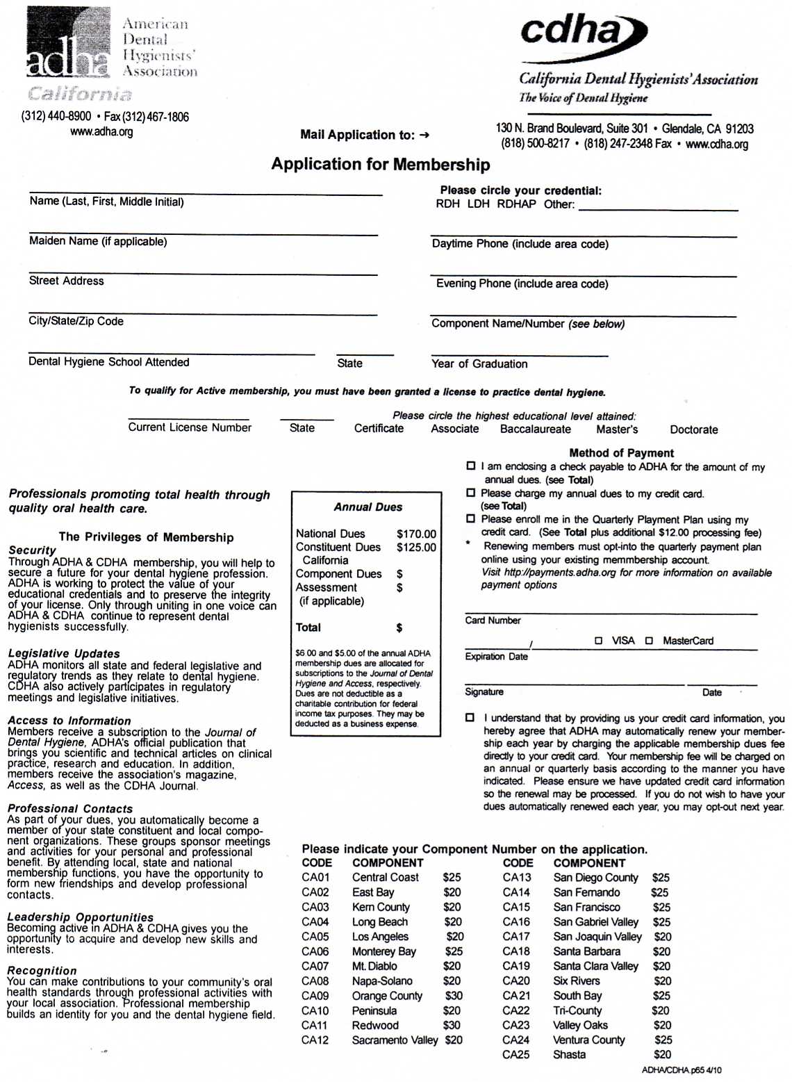 *Only CDHA members may receive ADHA/CDHA/ Local Component benefits. Only members may serve in voluntary and elected positions.