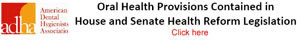 The American Dental Hygienists’ Association (ADHA) is committed to keeping the dental hygiene community informed on health reform matters that impact the profession. Both the House and Senate bills contain significant oral health provisions that are not often mentioned in media coverage of health reform.